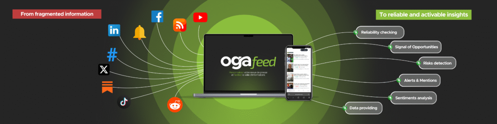 Ogafeed se positionne comme un hub d’intelligence pour les décideurs. Son objectif est simple : centraliser les sources d’information utiles, réduire le bruit et transformer des contenus dispersés en insights actionnables.