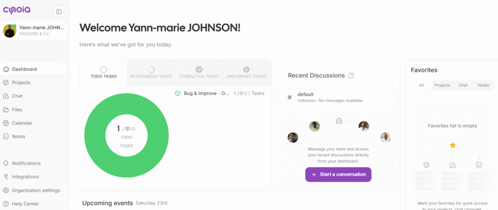 Adaptée aux besoins et au budget des PME, Cynoia réunit en une seule plateforme la messagerie, la visioconférence, la gestion de projet et d’autres outils pour le travail en équipe.