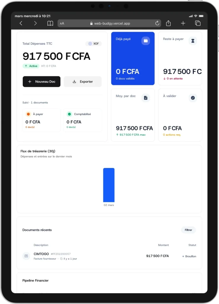 Pensé pour les entreprises africaines, Tablo est adapté à la comptabilité SYSCOHADA et permet d’ajouter facilement les pièces comptables pour simplifier le travail des dirigeants et des comptables.